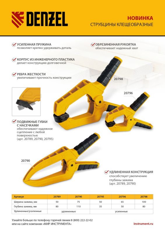 Струбцина клещеобразная, удлиненная Denzel 75 х 110 мм, 20790
