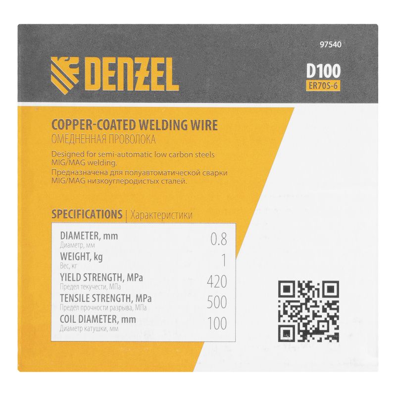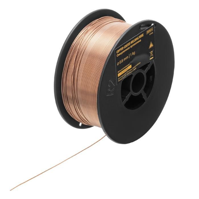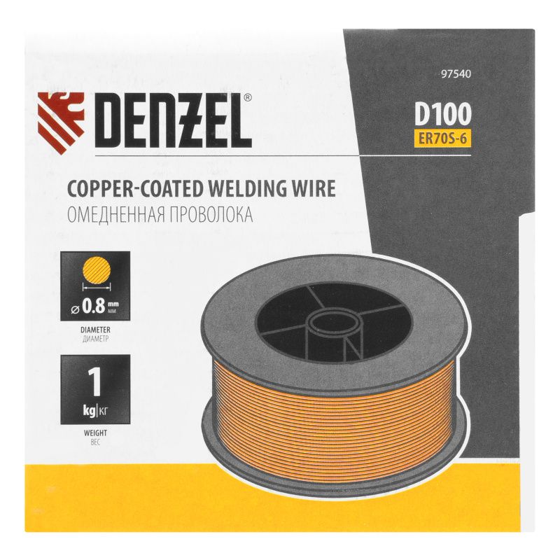 Омедненная проволока ER70S-6, диам. 0,8 мм, 1 кг, диам. катушки D100 Denzel, 97540