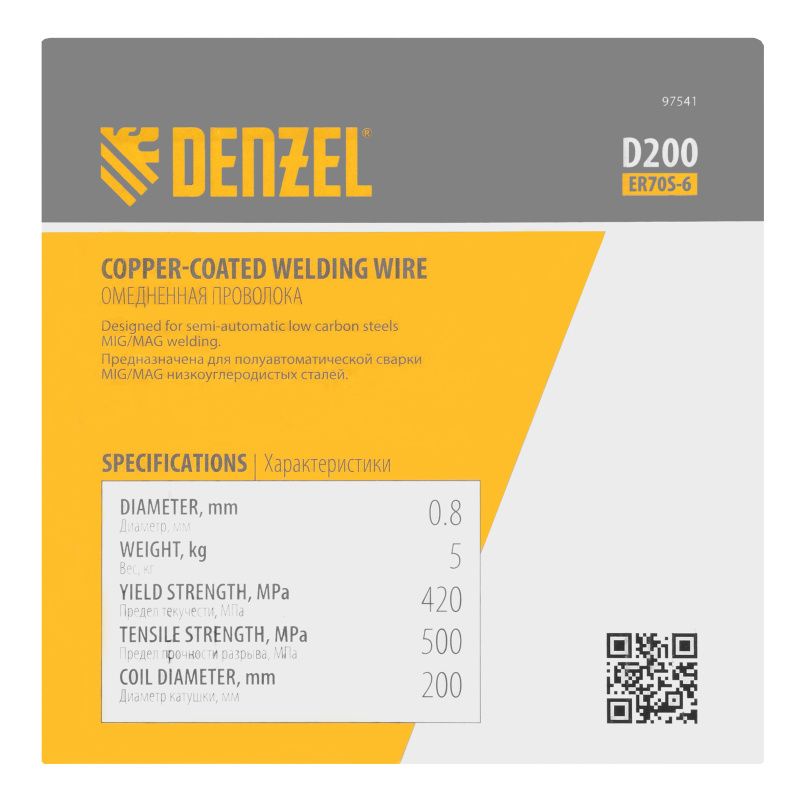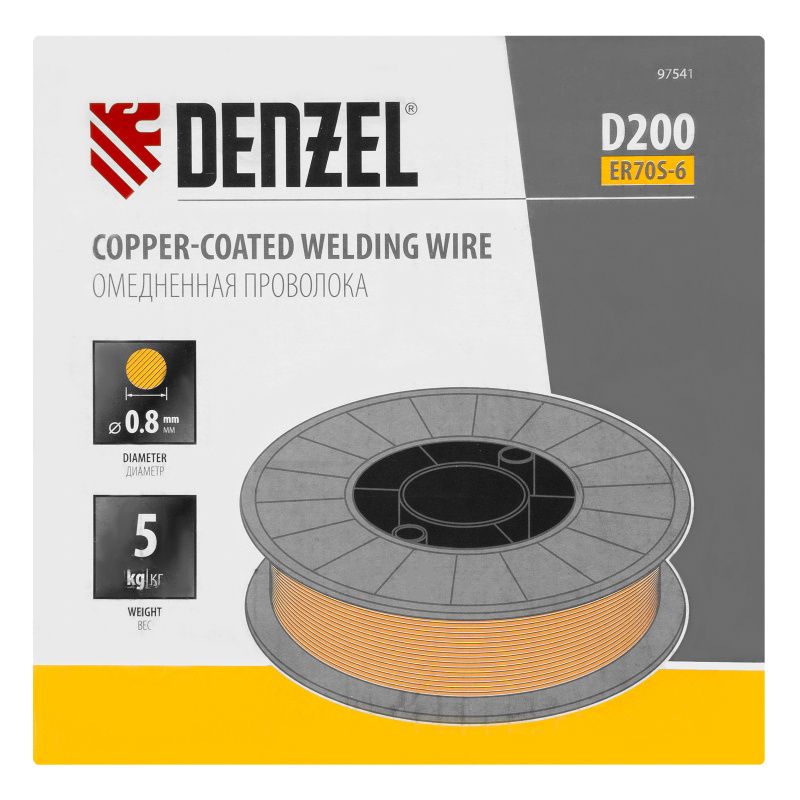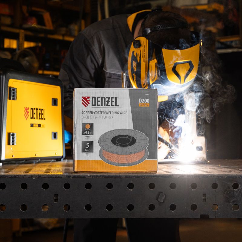 Омедненная проволока ER70S-6, диам. 0,8 мм, 5 кг, диам. катушки D200 Denzel, 97541