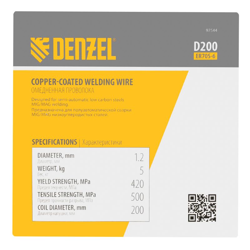 Омедненная проволока ER70S-6, диам. 1,2 мм, 5 кг, диам. катушки D200 Denzel, 97544