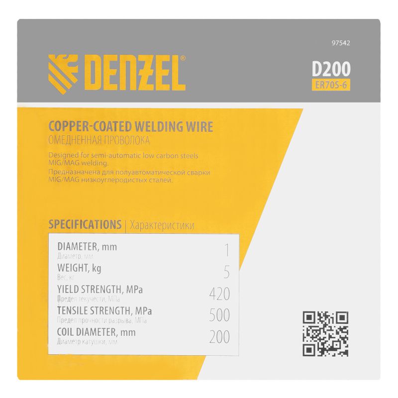 Омедненная проволока ER70S-6, диам. 1 мм, 5 кг, диам. катушки D200 Denzel, 97542