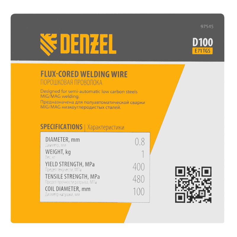Порошковая проволока Е71TGS, диам. 0,8 мм, 1 кг, диам. катушки D100 Denzel, 97545