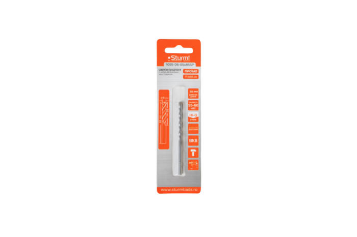 Сверло по бетону, 5x85мм, твердосплавная напайка BK8, цилиндрический хвостовик, Sturm PROMO, 1055-06-05x85SP