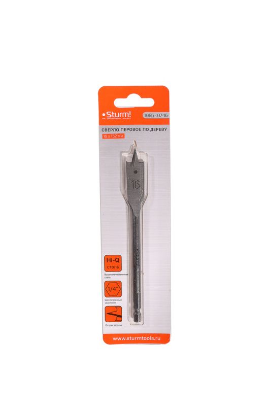 Сверло перовое по дереву, 16мм, шестигранный хвостовик, Sturm, 1055-07-16
