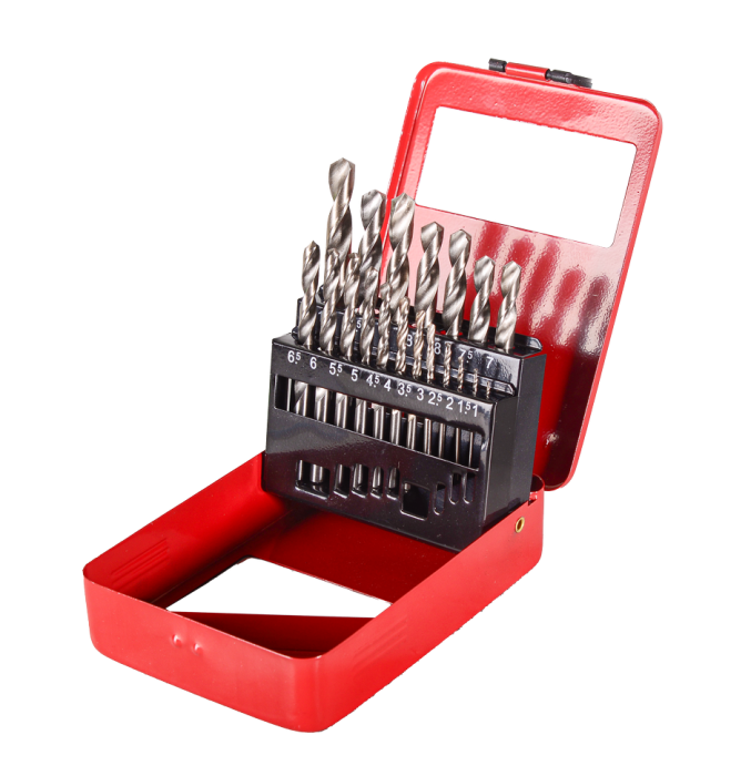Набор сверл по металлу , 1-10мм (через 0,5мм), HSS, 19шт., металл. коробка, цилиндрический хвостовик