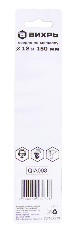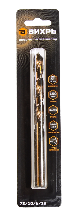 Сверло по металлу ВИХРЬ 12 мм, P6M5, 73/10/6/19