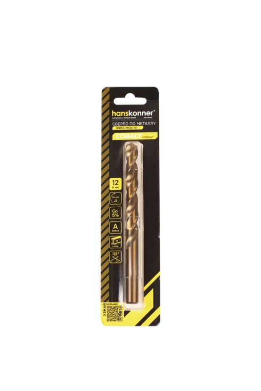 Сверло по металлу COBALT 12,0х151мм Hanskonner, H1055-M120-151