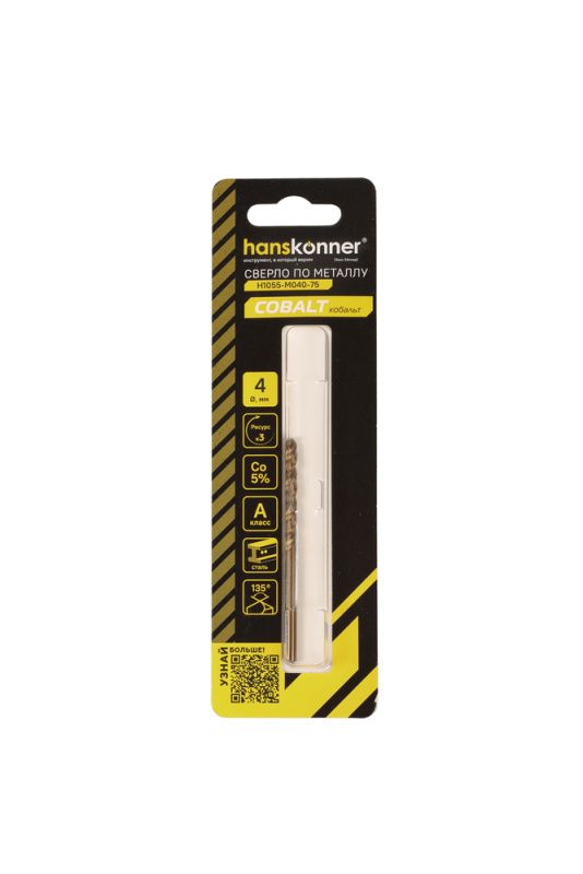 Сверло по металлу COBALT 4,0х75мм Hanskonner, H1055-M040-75