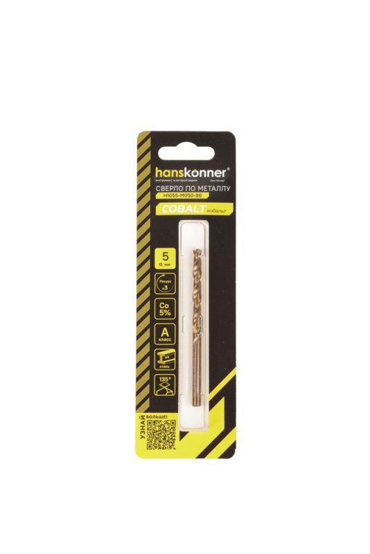 Сверло по металлу COBALT 5,0х86мм Hanskonner, H1055-M050-86