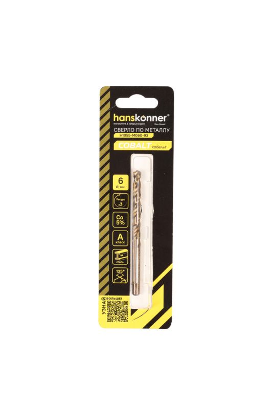 Сверло по металлу COBALT 6,0х93мм Hanskonner, H1055-M060-93