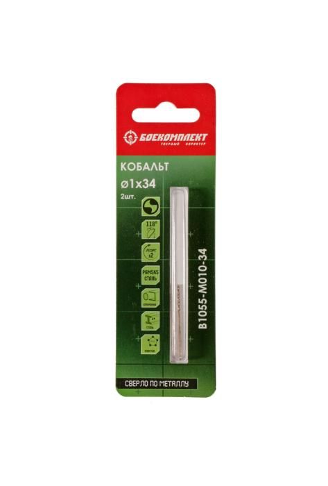 Сверло по металлу Кобальт 1,0х34мм 2шт БОЕКОМПЛЕКТ, B1055-M010-34