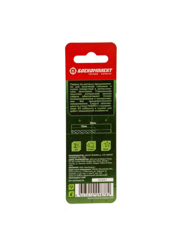 | Особенности | Сверло произведено из материала Р6М5К5 с содержанием кобальта 5%, который предотвращает перегрев сверла., Специальная подточка поперечной кромки сверла обеспечивает точное позиционирование и засверливание без предварительного накернивания; Сверло произведено из материала Р6М5К5 с содержанием кобальта 5%, который предотвращает перегрев сверла. Сверла служат для для работ повышенной сложности. |