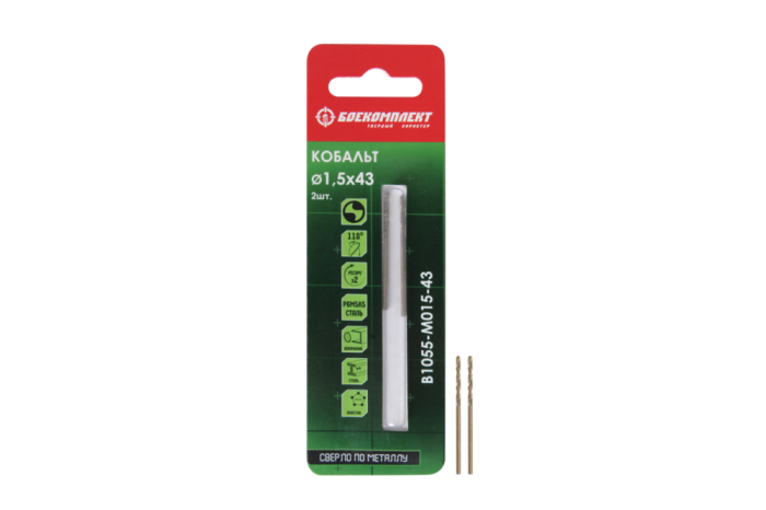 Сверло по металлу Кобальт 1,5х43мм 2шт БОЕКОМПЛЕКТ, B1055-M015-43