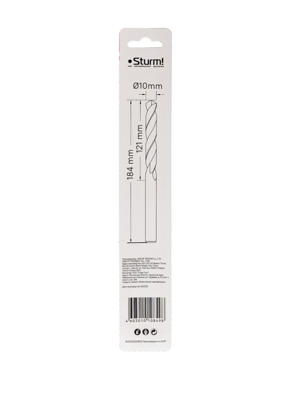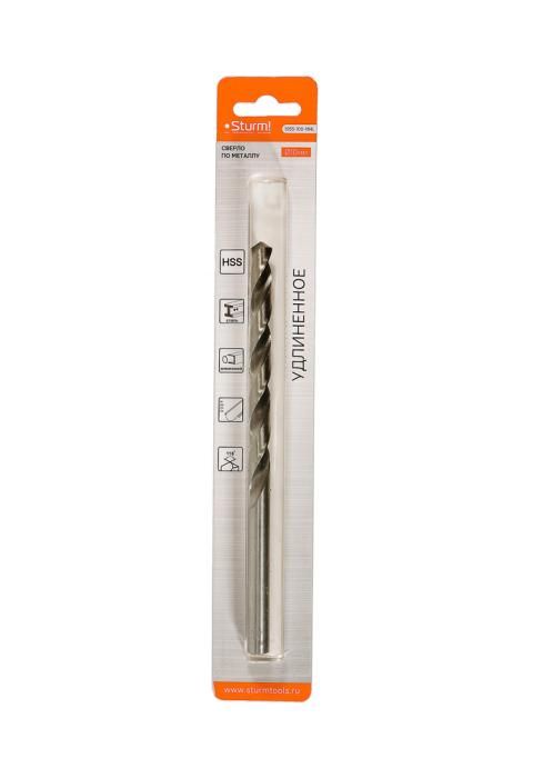 Сверло по металлу Sturm 10,0х184 мм, сталь HSS, удлинен., 118° ,блистер 1 шт, 1055-100-184L