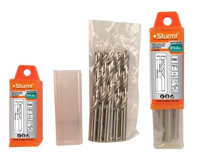 Сверло по металлу Sturm 10,2х133 мм, сталь HSS, упаковка 5 шт, 1055-04-10S2-SS5