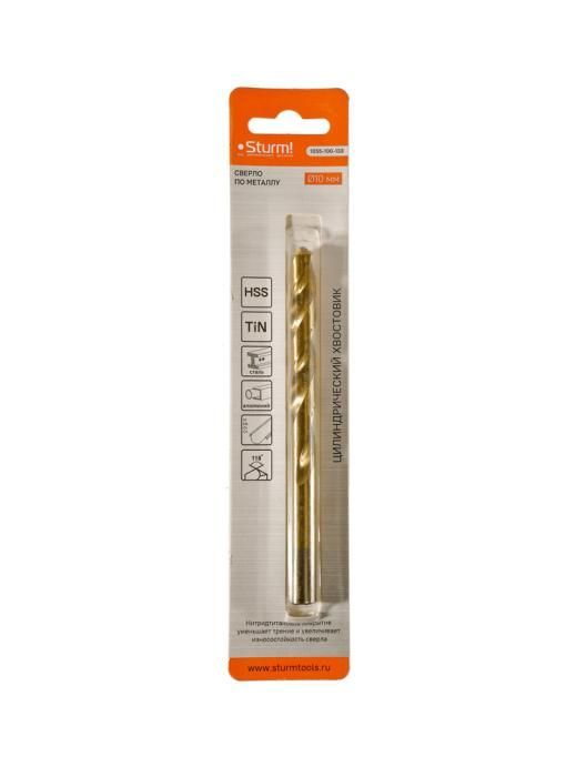 Сверло по металлу Sturm 10х133 мм, сталь HSS,нитридтитан., 118° ,блистер 1 шт, 1055-100-133