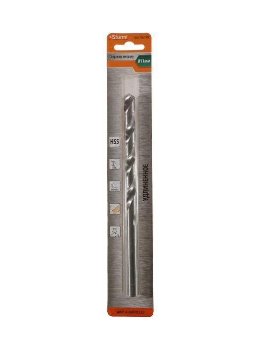 Сверло по металлу Sturm 11,0х195 мм, сталь HSS, удлинен., 118° ,блистер 1 шт, 1055-110-195L