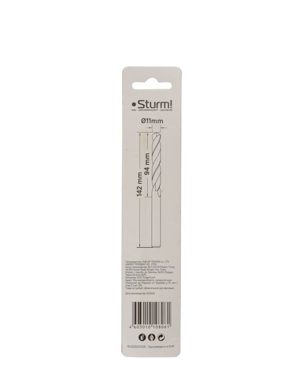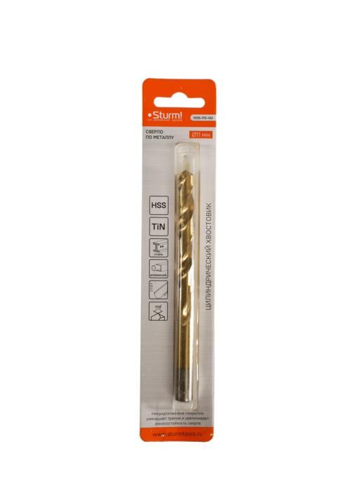 Сверло по металлу Sturm 11х142 мм, сталь HSS, нитридтитан., 118° ,блистер 1 шт, 1055-110-142