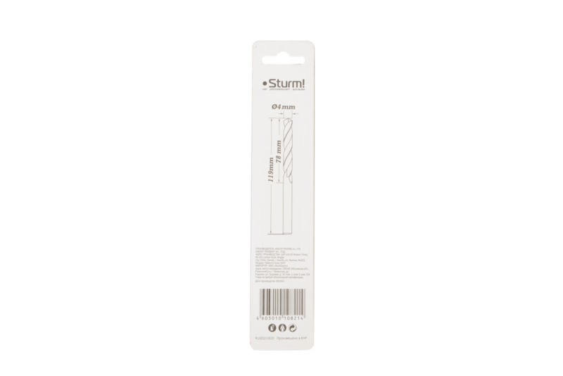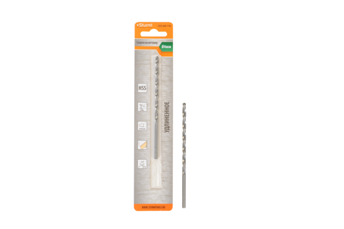 Сверло по металлу Sturm 4,0х119 мм, сталь HSS, удлинен., 118° ,блистер 1 шт, 1055-040-119L