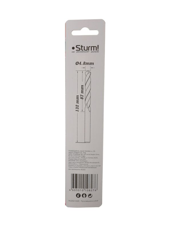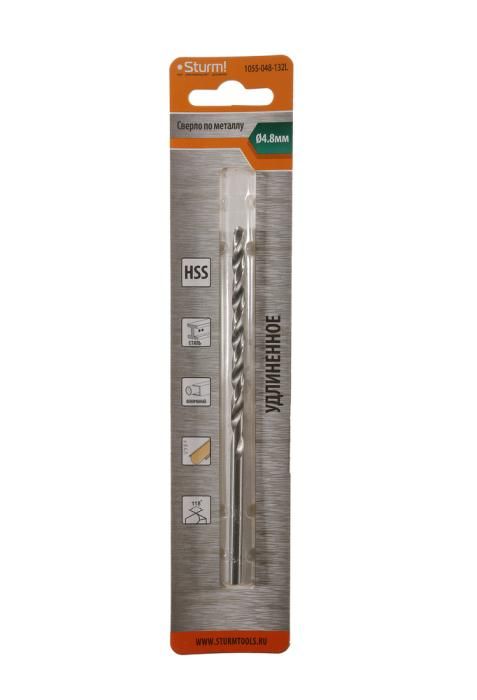 Сверло по металлу Sturm 4,8х132 мм, сталь HSS, удлинен., 118° ,блистер 1 шт, 1055-048-132L