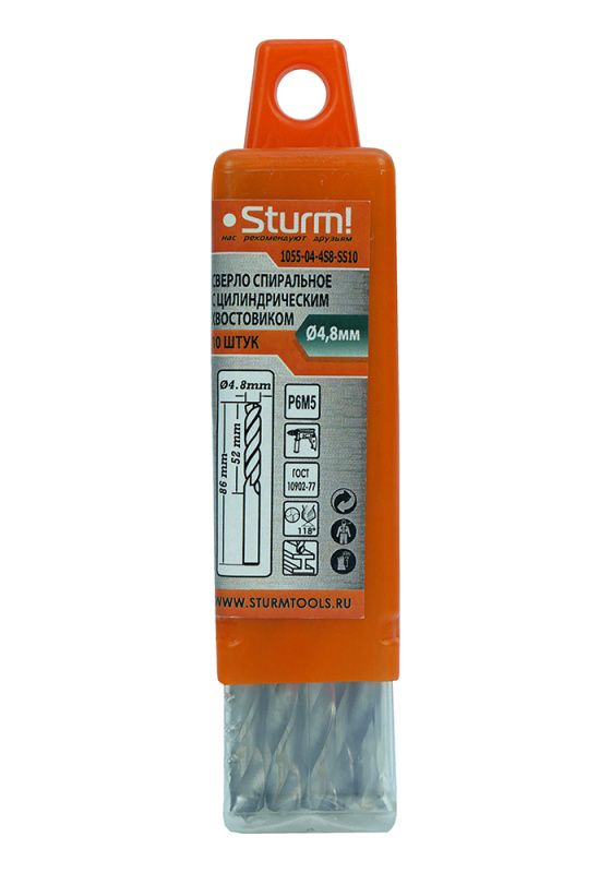 Сверло по металлу Sturm 4,8х86мм, сталь HSS, упаковка 10 шт, 1055-04-4S8-SS10