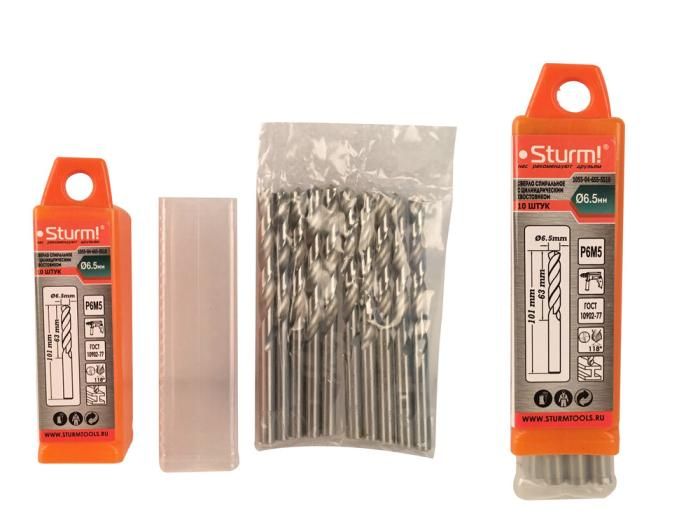 Сверло по металлу Sturm 6,5х101 мм, сталь HSS, упаковка 10 шт, 1055-04-6S5-SS10