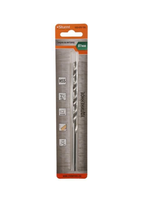 Сверло по металлу Sturm 7,0х156 мм, сталь HSS, удлинен., 118° ,блистер 1 шт, 1055-070-156L