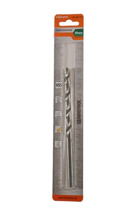 Сверло по металлу Sturm 9,0х175 мм, сталь HSS, удлинен., 118° ,блистер 1 шт, 1055-090-175L
