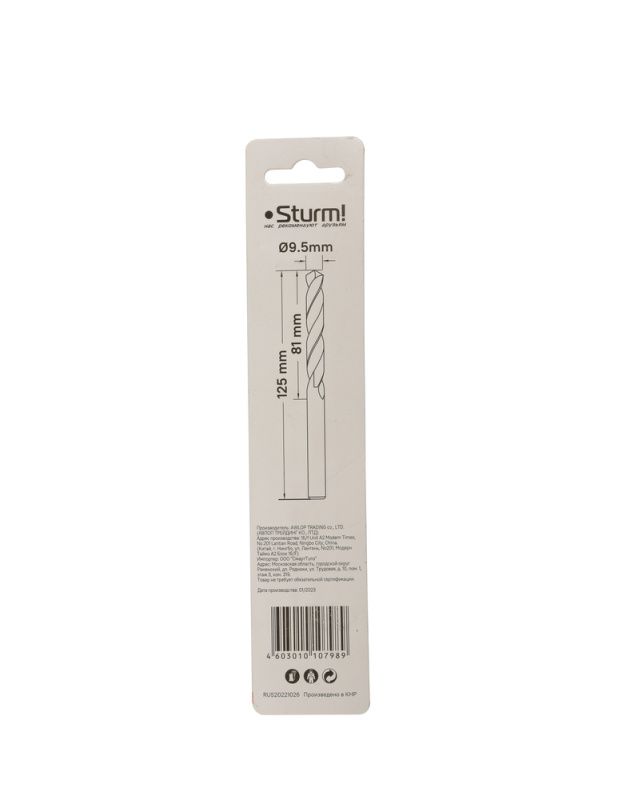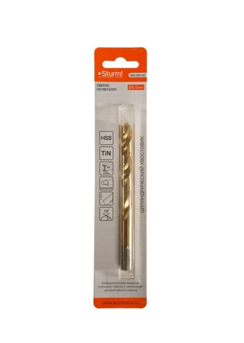 Сверло по металлу Sturm 9,5х125 мм, сталь HSS, нитридтитан., 118° ,блистер 1 шт, 1055-095-125
