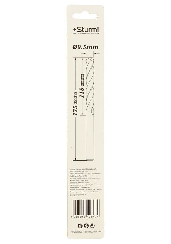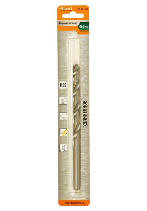 Сверло по металлу Sturm 9,5х175 мм, сталь HSS, удлинен., 118° ,блистер 1 шт, 1055-095-175L