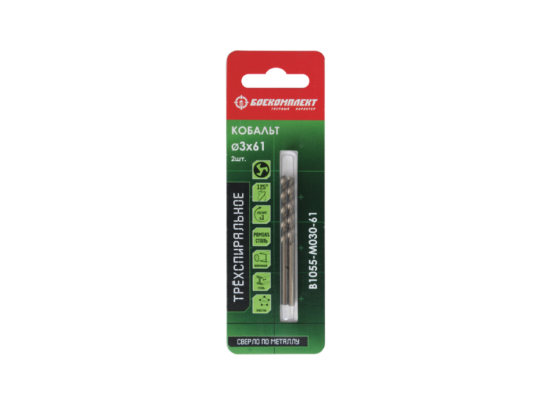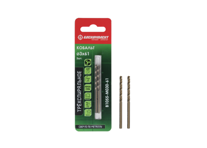 Сверло по металлу ТРЁХСПИРАЛЬНОЕ Кобальт 3,0х61мм 2шт БОЕКОМПЛЕКТ, B1055-M030-61