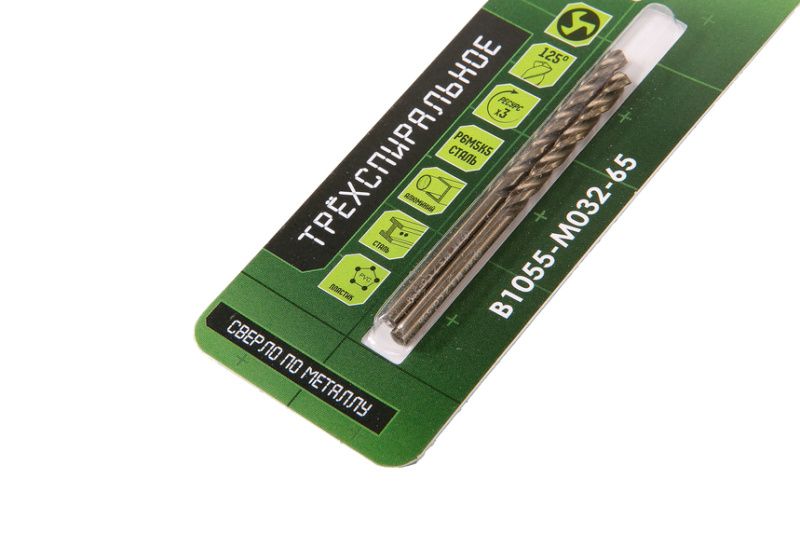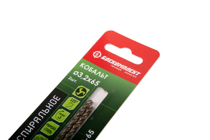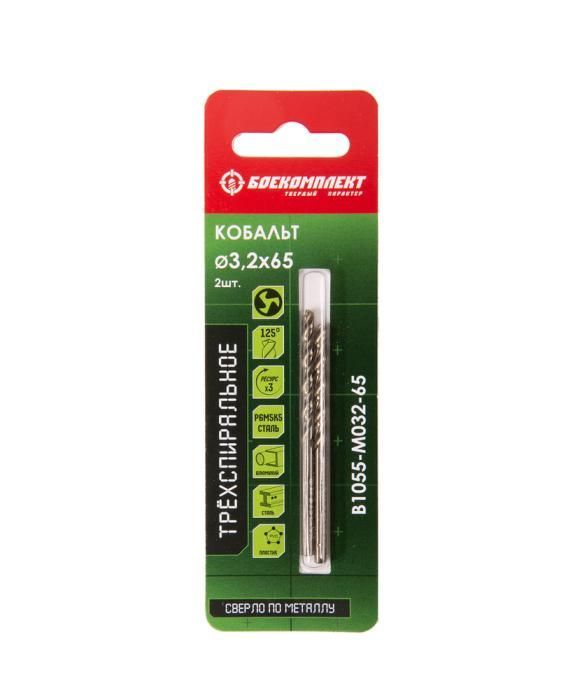 Сверло по металлу ТРЁХСПИРАЛЬНОЕ Кобальт 3,2х65мм 2шт БОЕКОМПЛЕКТ, B1055-M032-65
