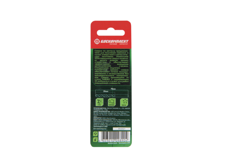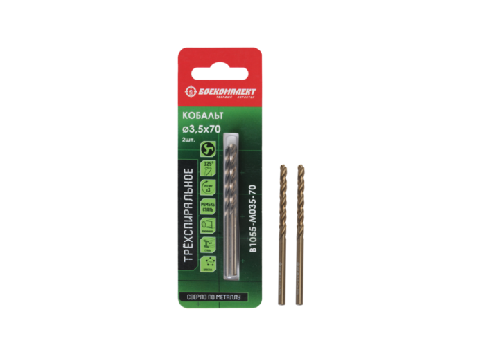 Сверло по металлу ТРЁХСПИРАЛЬНОЕ Кобальт 3,5х70мм 2шт БОЕКОМПЛЕКТ, B1055-M035-70