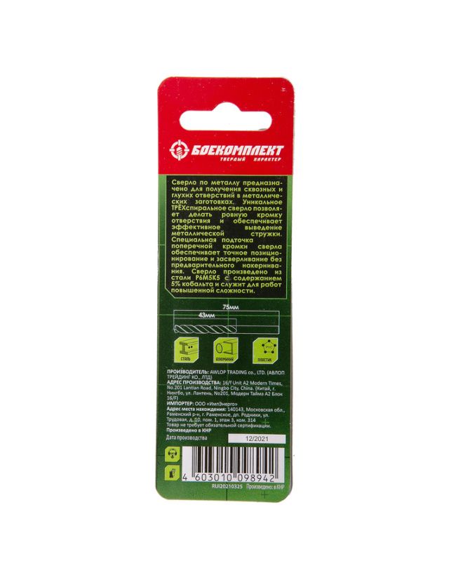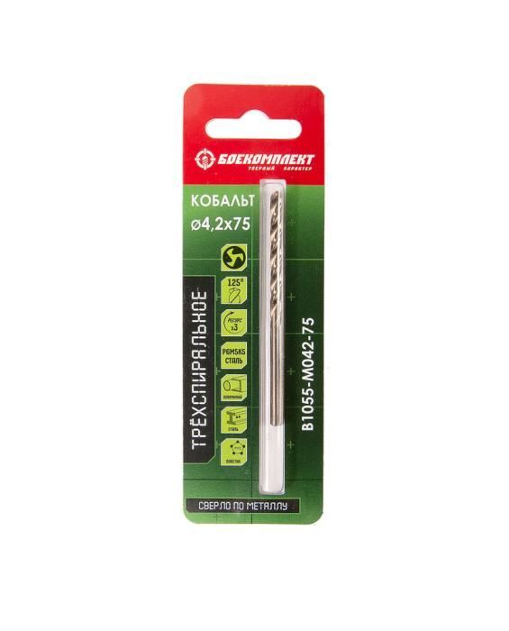 Сверло по металлу ТРЁХСПИРАЛЬНОЕ Кобальт 4,2х75мм БОЕКОМПЛЕКТ, B1055-M042-75