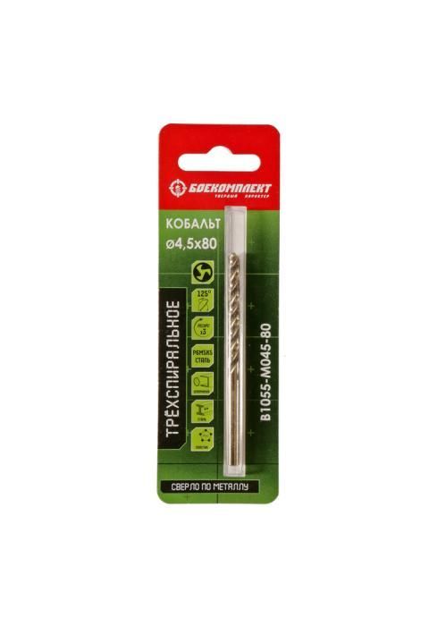 Сверло по металлу ТРЁХСПИРАЛЬНОЕ Кобальт 4,5х80мм БОЕКОМПЛЕКТ, B1055-M045-80