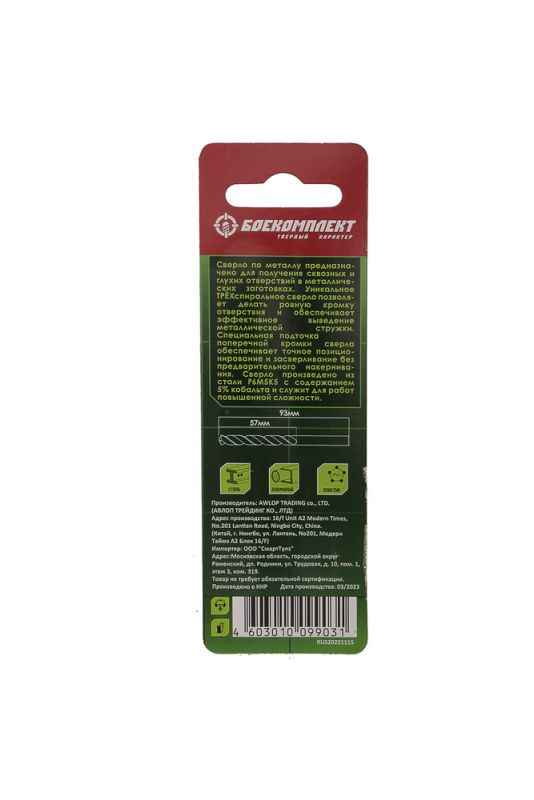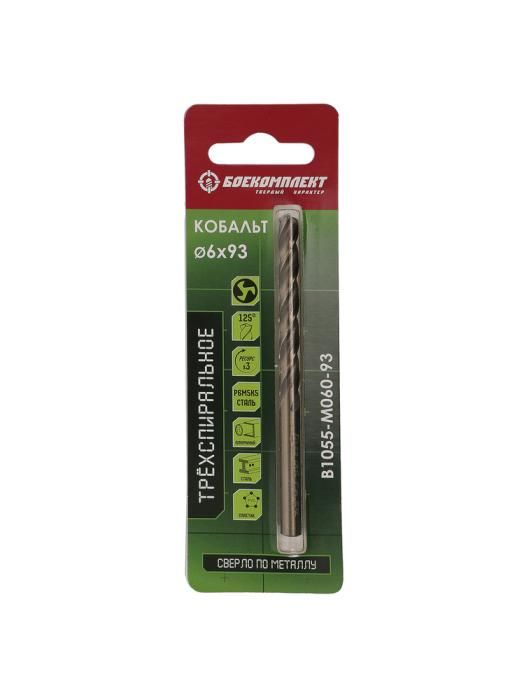 Сверло по металлу ТРЁХСПИРАЛЬНОЕ Кобальт 6,0х93мм БОЕКОМПЛЕКТ, B1055-M060-93