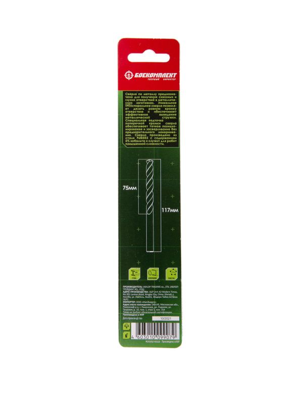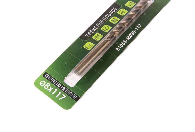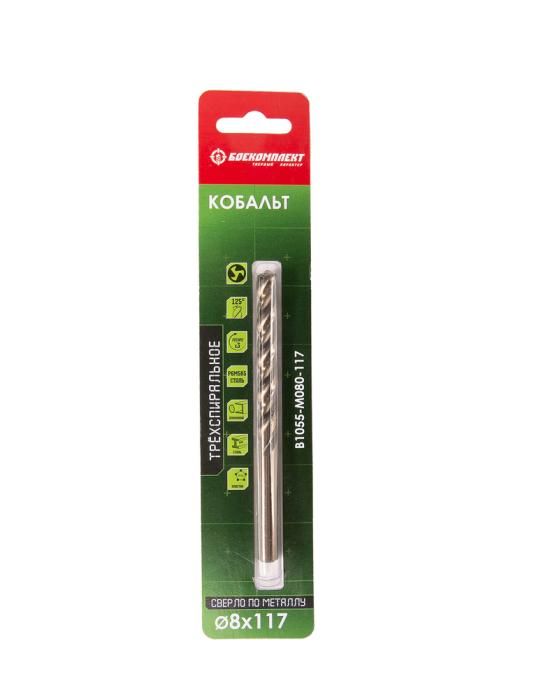 Сверло по металлу ТРЁХСПИРАЛЬНОЕ Кобальт 8,0х117мм БОЕКОМПЛЕКТ, B1055-M080-117