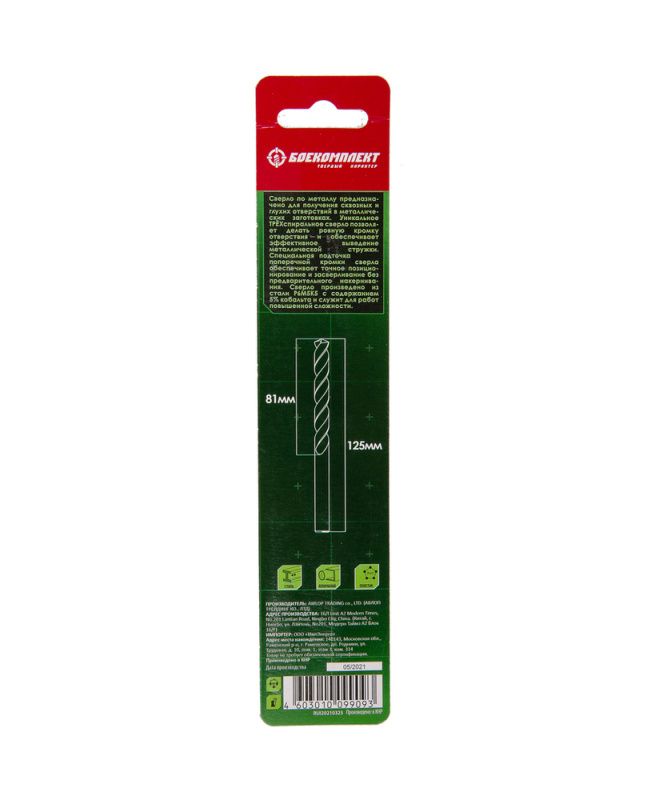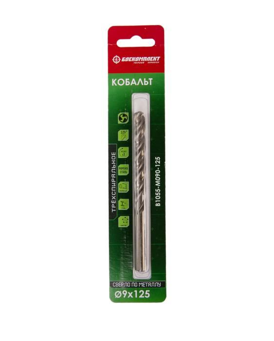 Сверло по металлу ТРЁХСПИРАЛЬНОЕ Кобальт 9,0х125мм БОЕКОМПЛЕКТ, B1055-M090-125