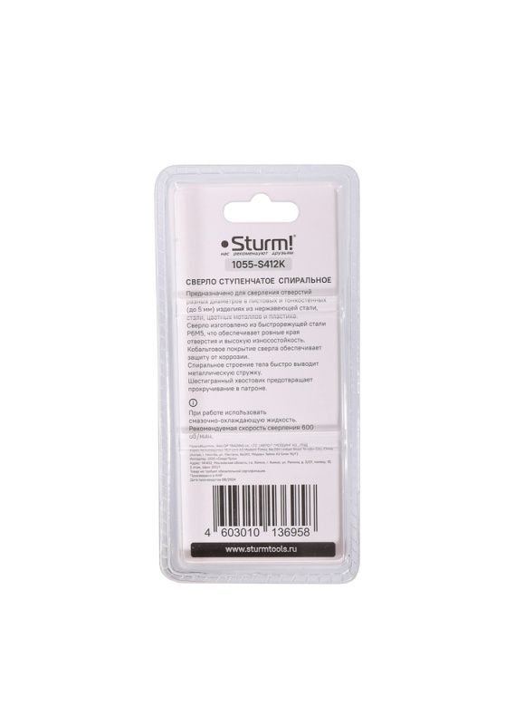 Сверло ступенчатое по металлу 4-12мм шаг 1мм Р6М5+COBALT, спираль Sturm, 1055-S412K