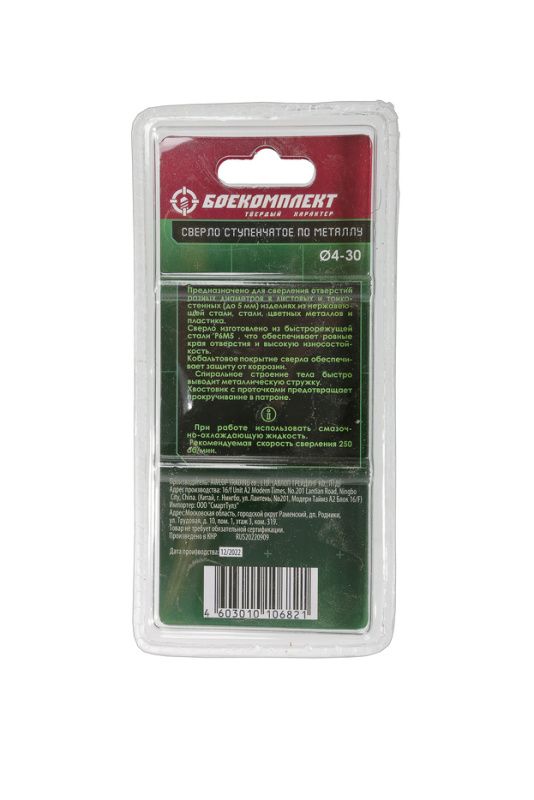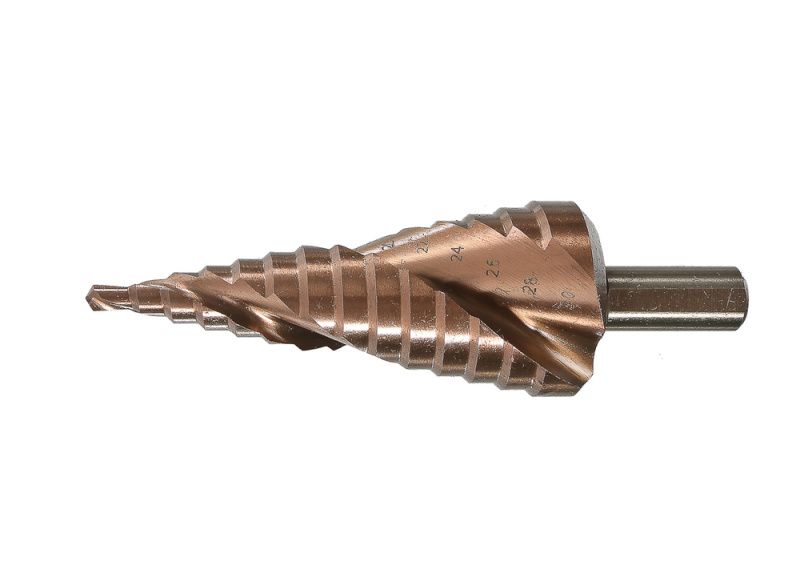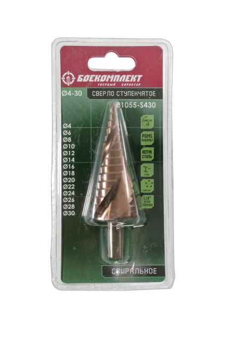 Сверло ступенчатое по металлу 4-30мм шаг 2мм Р6М5+COBALT спираль БОЕКОМПЛЕКТ, B1055-S430