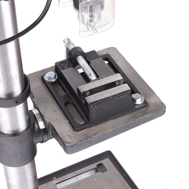 | Дополнительные характеристики | 1. Основание из чугуна обеспечивает хорошую устойчивость при работе. 2. Тиски в комплекте для надёжной фиксации заготовки. 3. 12 скоростей работы. |