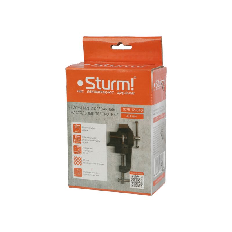 Тиски мини 40мм, поворотные, на струбцине, Sturm, 1075-12-040