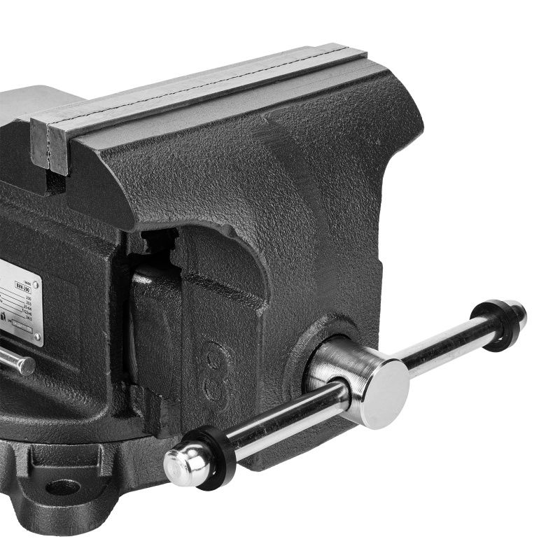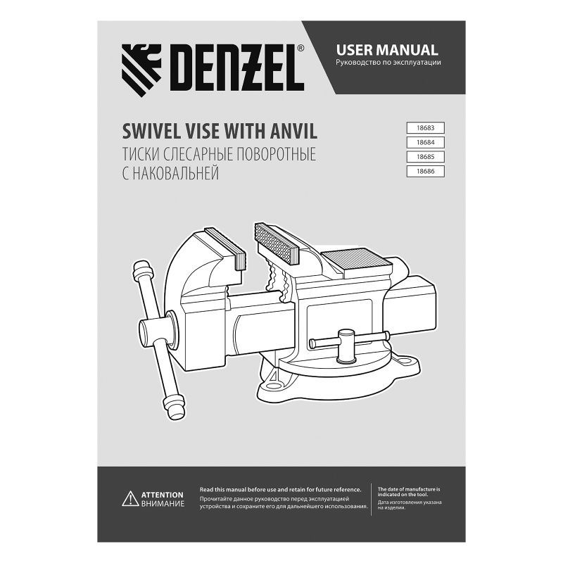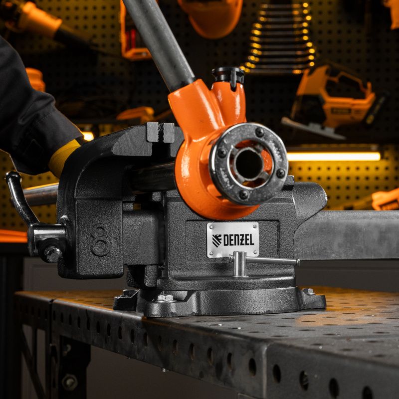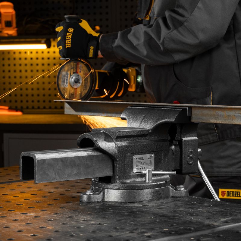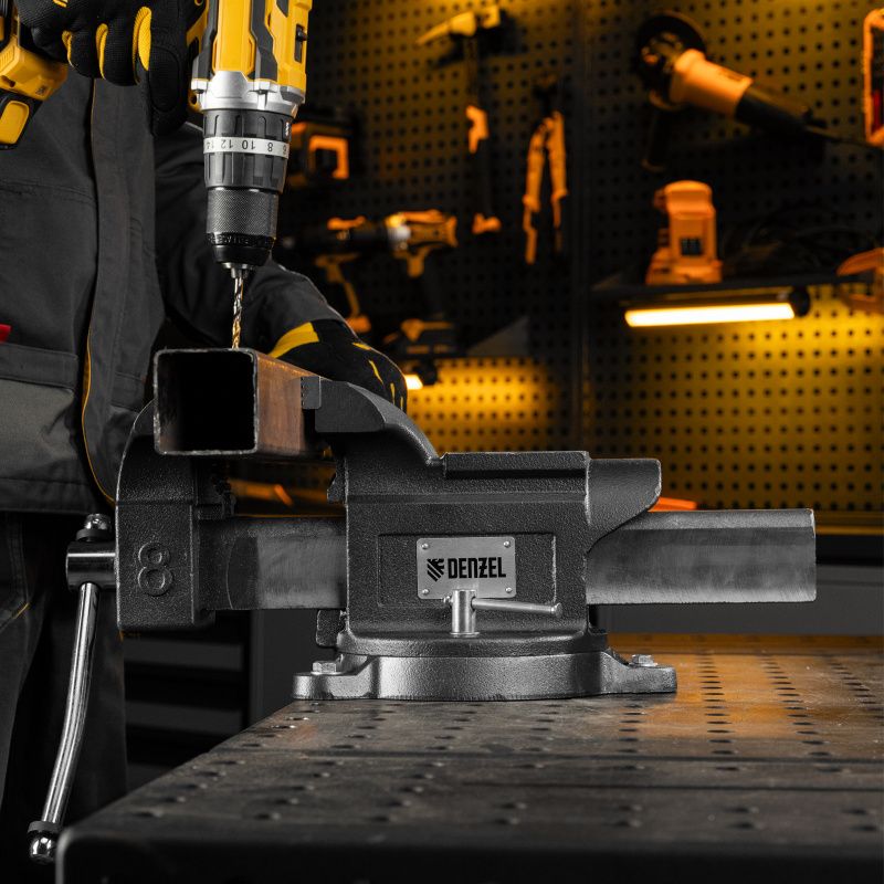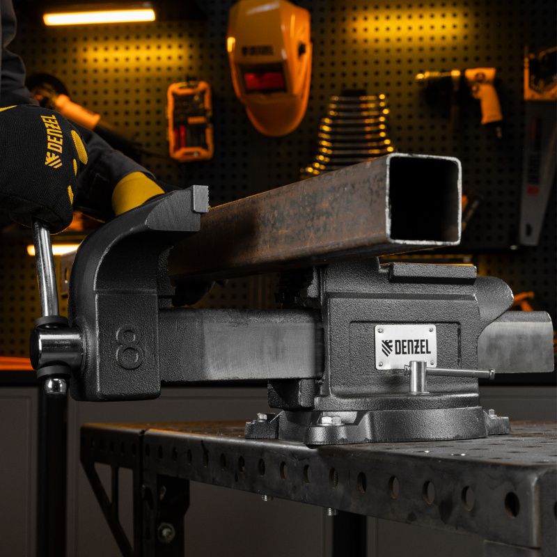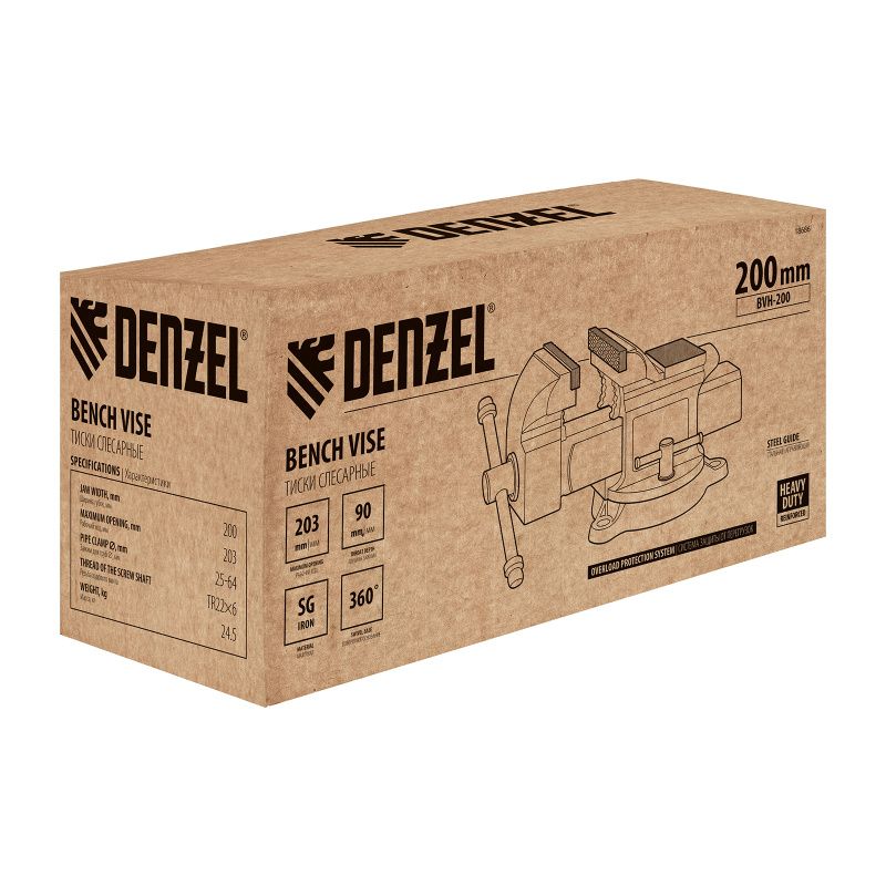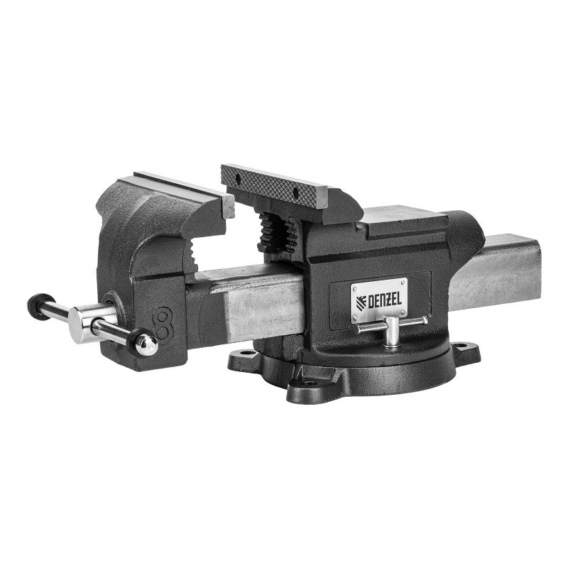 Тиски слесарные BVH-200, 200 мм, поворотные, стальная направляющая, с наковальней //Denzel, 18686