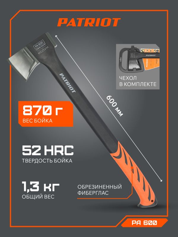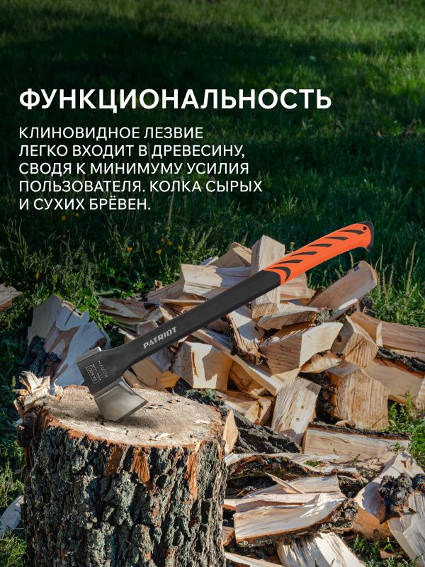 Топор-колун PATRIOT PA 600 Logger X-Treme Cleaver 1300 г. T11. Эргономичная фиберглассовая рукоятка с системой низкой вибрации.