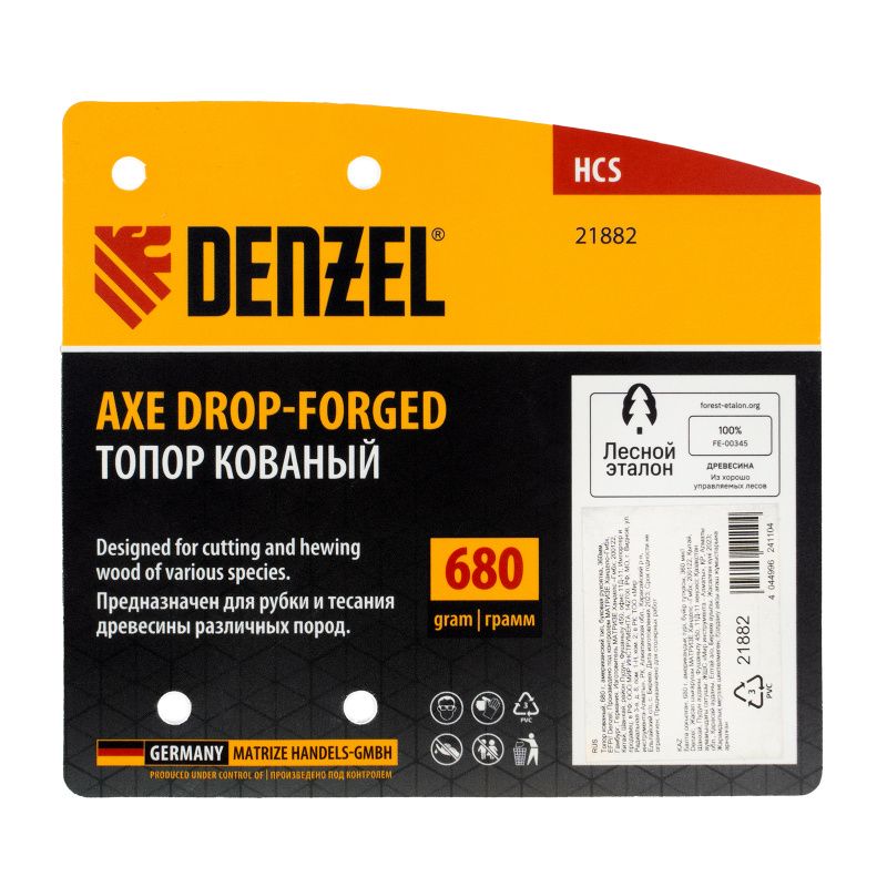 Топор кованый, 680 г, американский тип, буковая рукоятка, 360мм, EFP Denzel, 21882