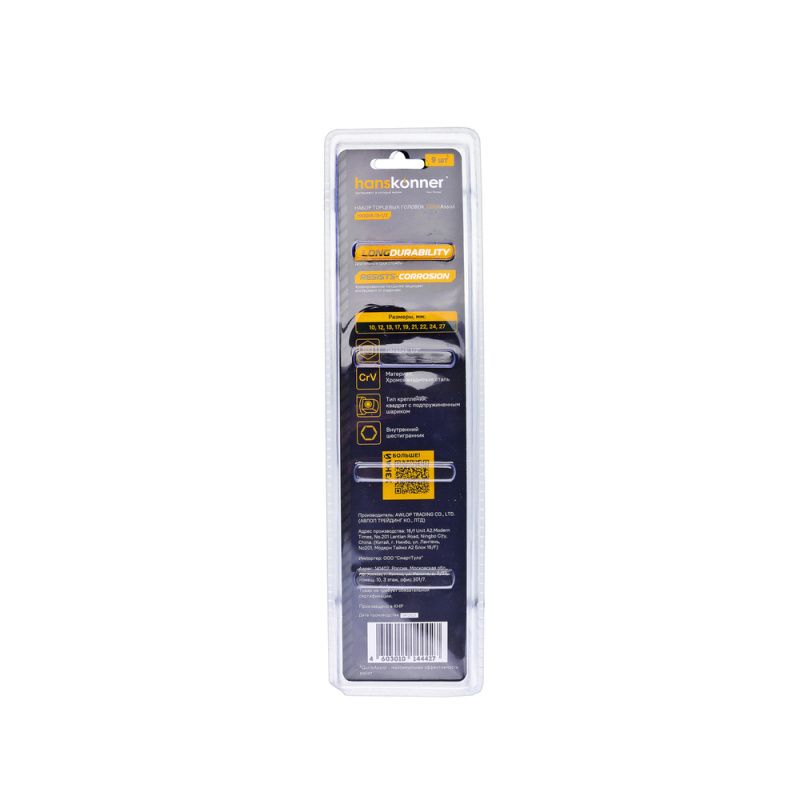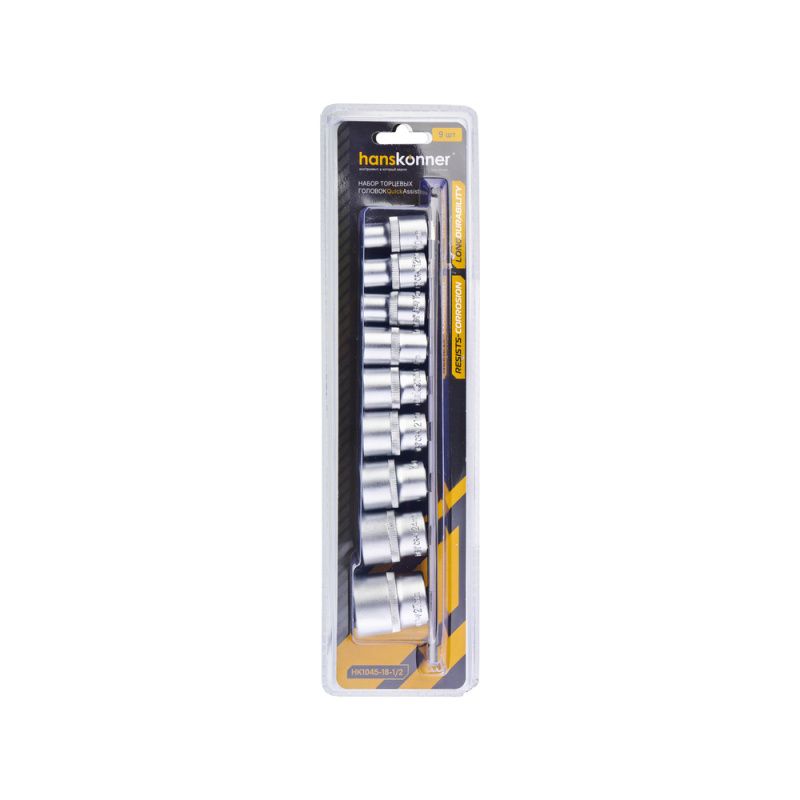 Набор головок CrV 9 шт 10-27 мм, посад 1/2", Hanskonner, HK1045-18-1/2