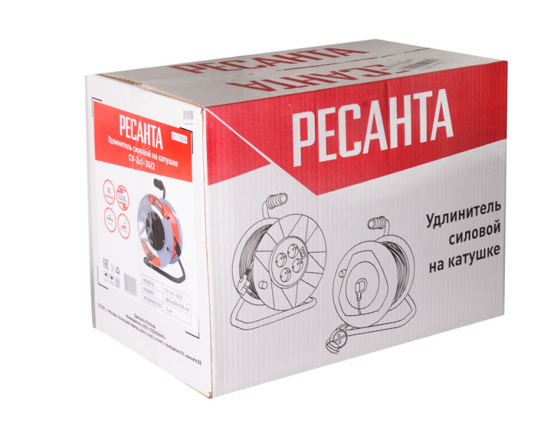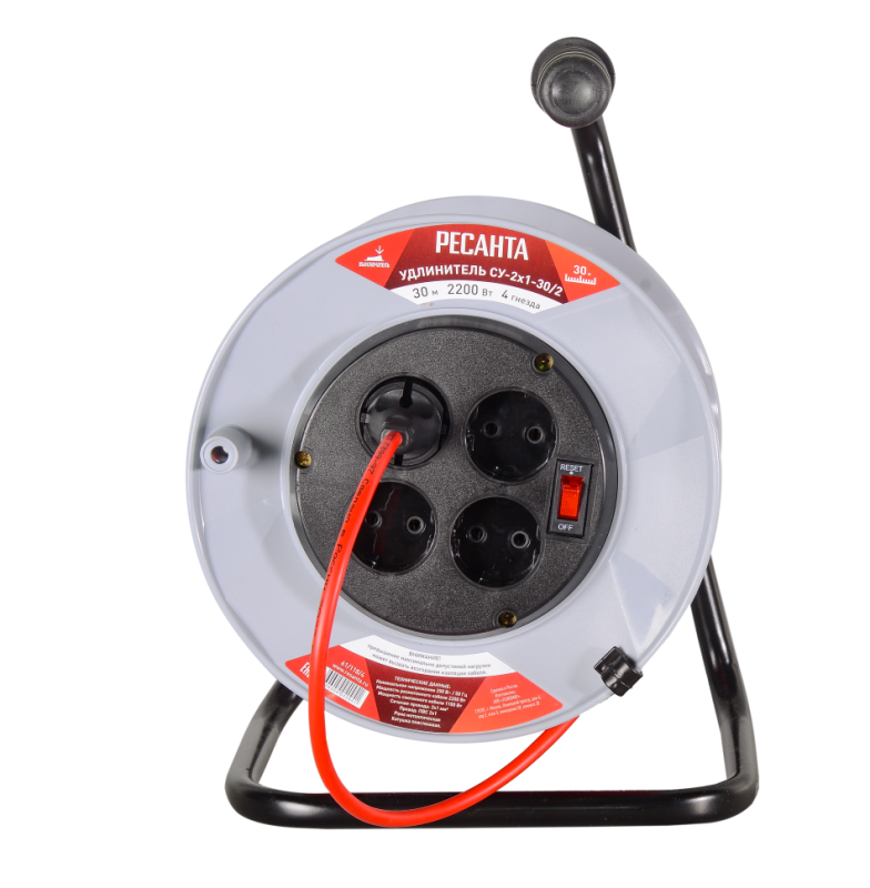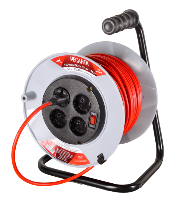 Удлинитель силовой на катушке Ресанта СУ-2х1-30/2 (с выкл., 4 розетки), 61/118/4