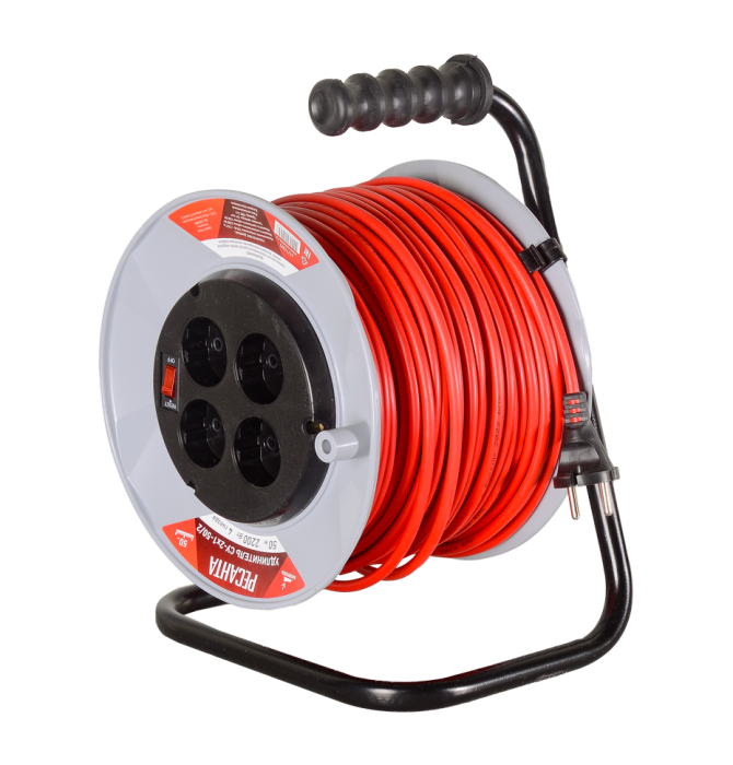Удлинитель силовой на катушке Ресанта СУ-2х1-50/2 (с выкл., 4 розетки), 61/118/5
