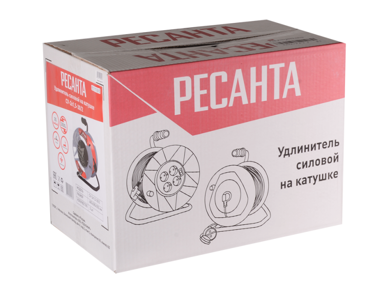 Удлинитель силовой на катушке Ресанта СУ-3х1,5-30/2 (с выкл., 4 розетки), 61/118/6