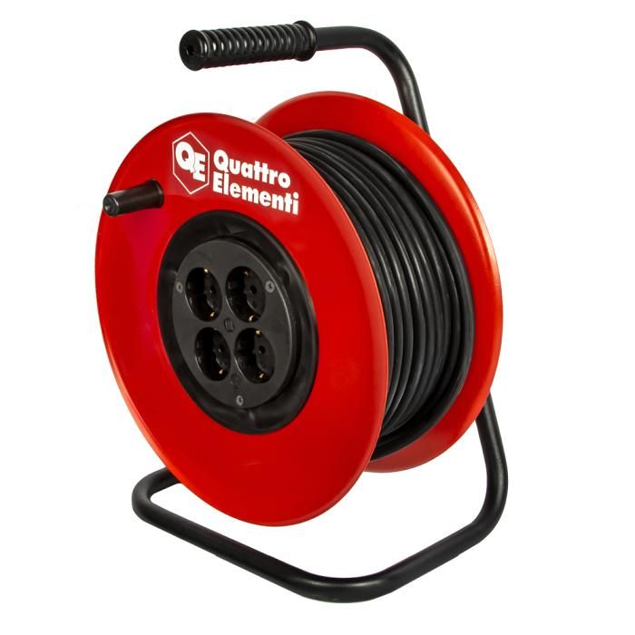 Удлинитель силовой QUATTRO ELEMENTI УХз16-004 - 50 м, провод КГ 3х2,5 мм2, 4 роз. 16А 220В, катушка металл, 172-309